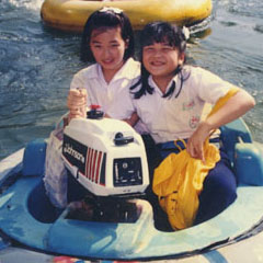 | 我七歲的時候哦....馬桶蓋頭髮的是我...很像日本人吧!....我抱著我妹妹..... (1987-2) | 小學六年級時候, 校外教學時照的....左邊的才是我哦!! 不要認錯囉...(1992-春) |