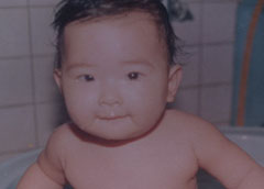 | 我跟大我10天的堂姊...我抱著跟了我7年的布偶"阿狗"....這一張好像比較像女孩子耶.....cc (1981-冬) | 這一張超醜的.....我的出浴圖哦!! 我故意把照片切掉了一半.... 為了符合本站的尺度...呵 (1980-冬) |